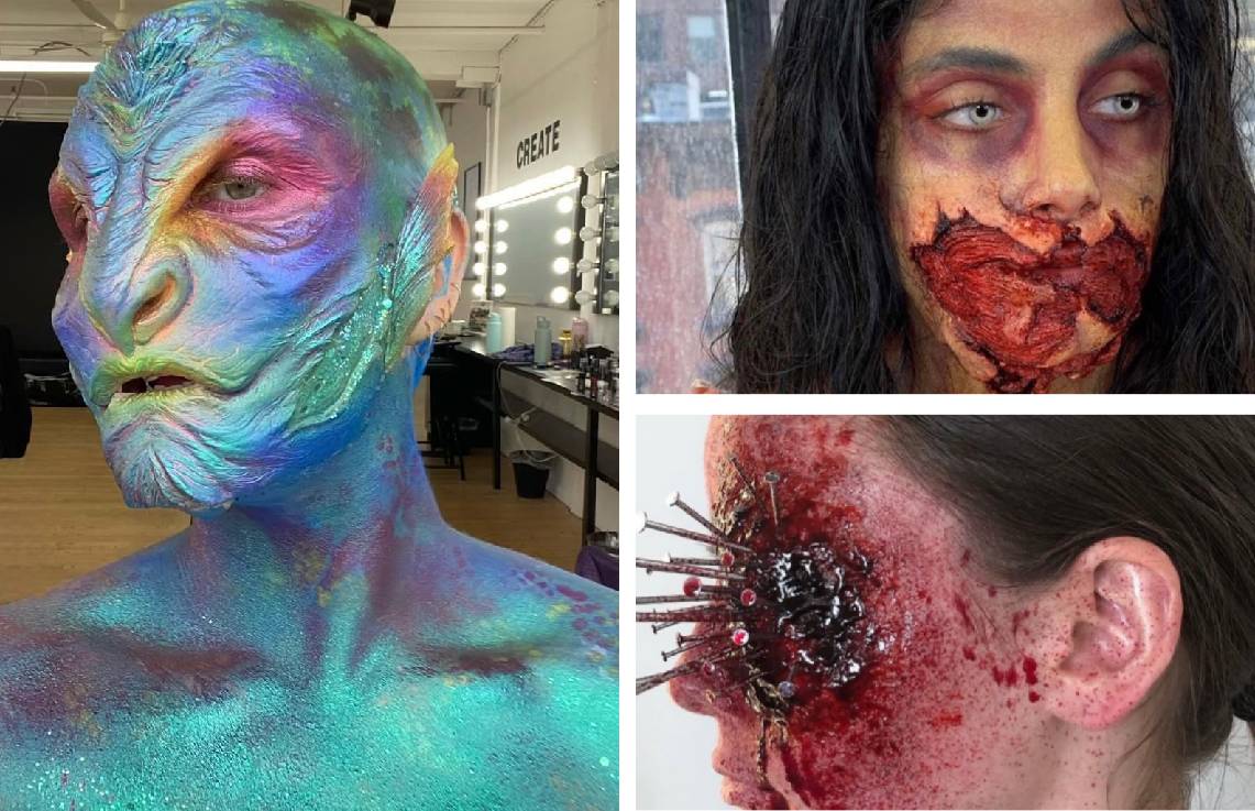 • Special effects – including bruising, open wounds, bullet wounds, cauliflower ears, track marks, scratches, burns, stitched wounds, nose in wax and eyebrow alteration using wax and soap, scar moulding material, gelatine and latex
